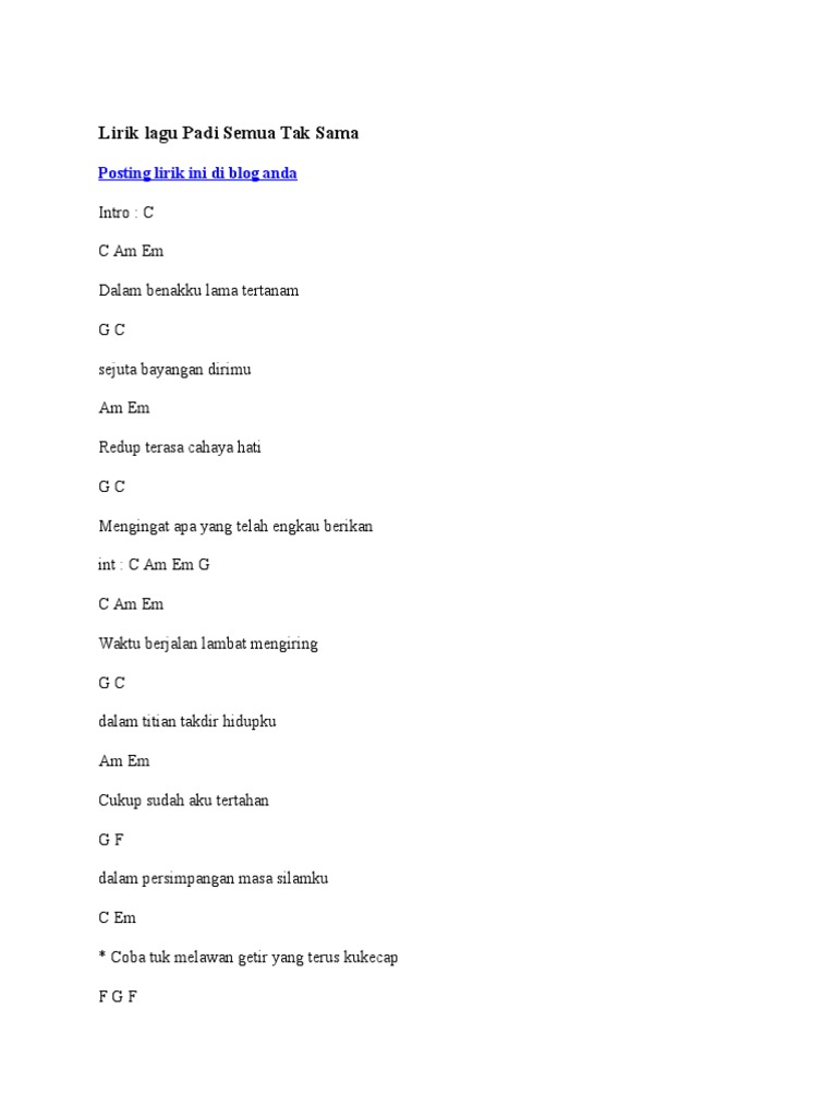 Maybe you would like to learn more about one of these? Chord gitar padi semua tak sama chordtela. Check spelling or type a new query. We did not find results for:
